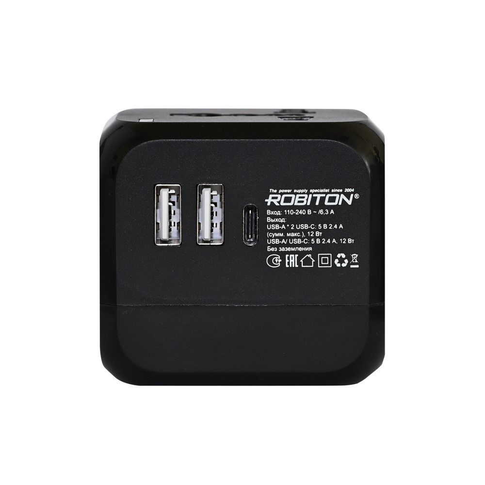 3 мощных выхода: 2 USB-A и USB-C. (общий ток до 2,4А