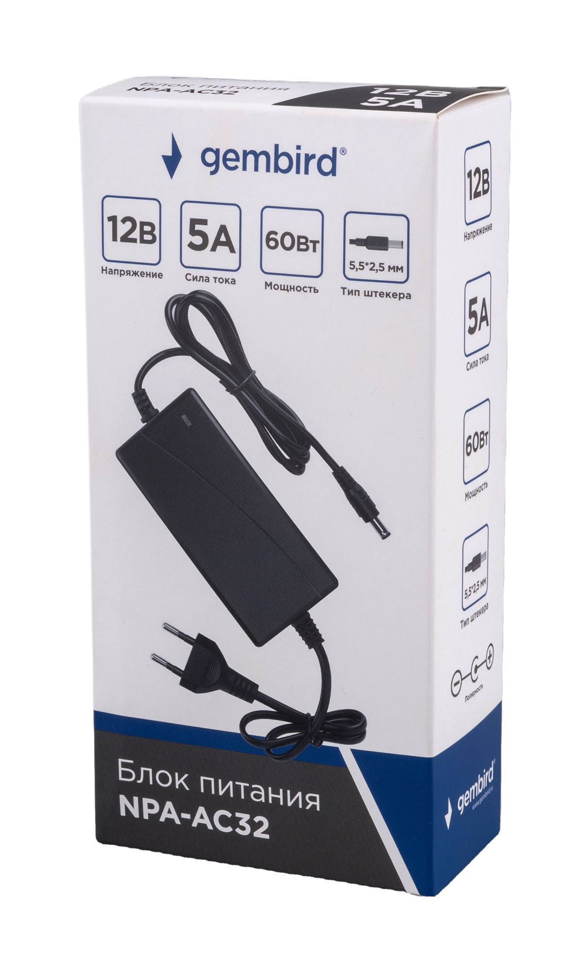 Размер штекера: 5,5*2,5 мм